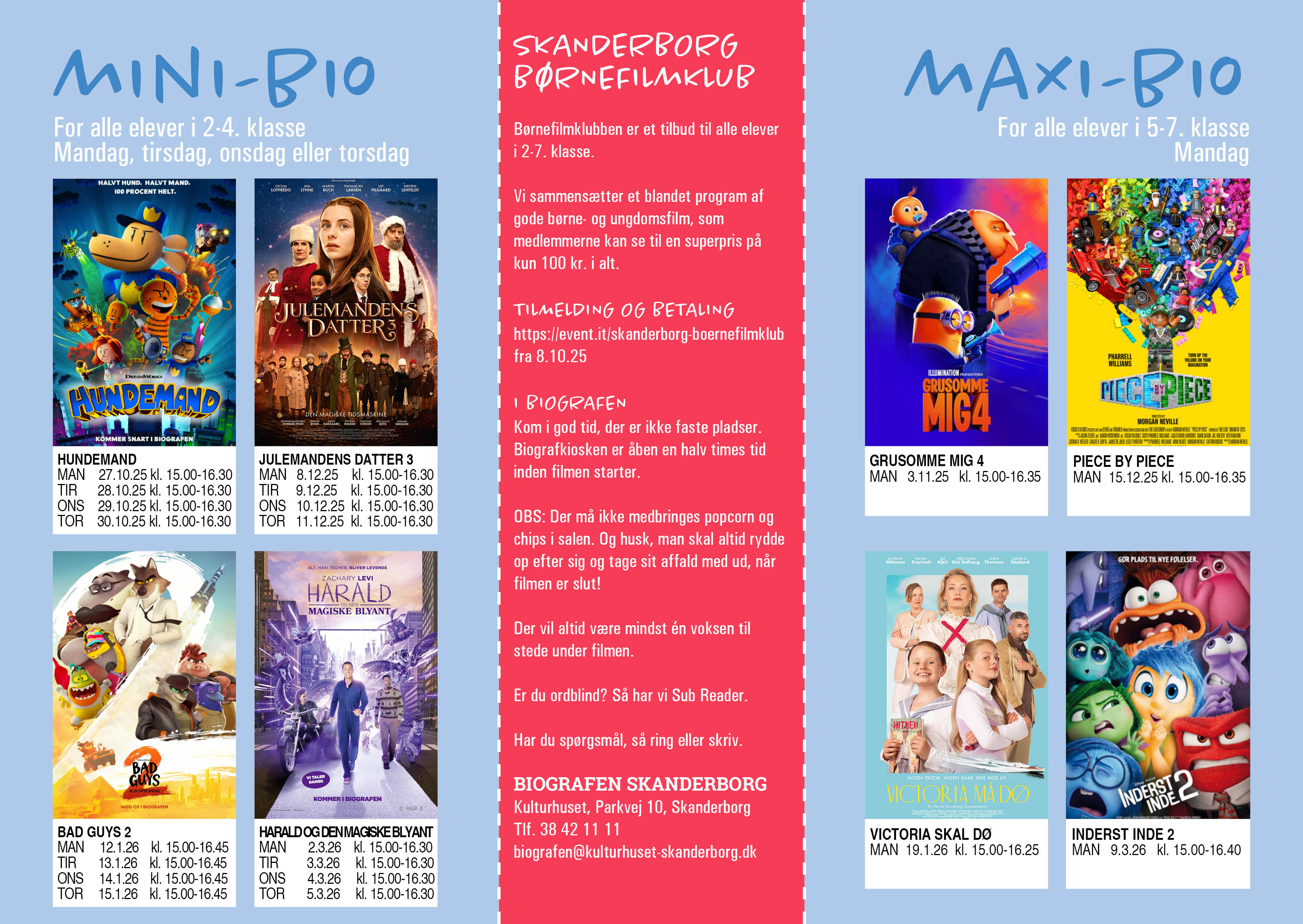 Biografens to børnefilmklubber er et tilbud til alle elever i 2-7. klasse.